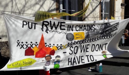 Am Montag, 15. Mai um 11 Uhr findet der nächste Prozess wegen der Aktion #BlockNeurath statt. Parallel zur COP hatten im November 2021 etliche Aktivist*innen mit Ankettaktionen auf den Schienen dafür gesorgt, dass das Kraftwerk mangels Kohlelieferungen gedrosselt werden musste und so zwischen 5000 und 22000 Tonnen CO2 gespart. Angeklagt für die Aktion sind 4 Personen, ein*e davon wurde im April vom Amtsgericht Grevenbroich bereits zu 9 Monaten Haft ohne Bewährung wegen „Störung öffentlicher Betriebe“ verurteilt. Berufung gegen das Urteil ist eingelegt. Das ist eine skandalös hohe Strafe!